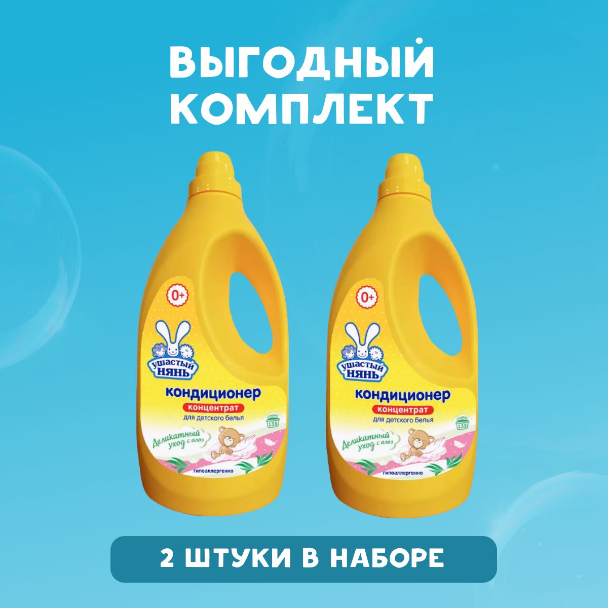 Кондиционер для белья Ушастый нянь детский с алоэ вера 2 шт по 2 л
