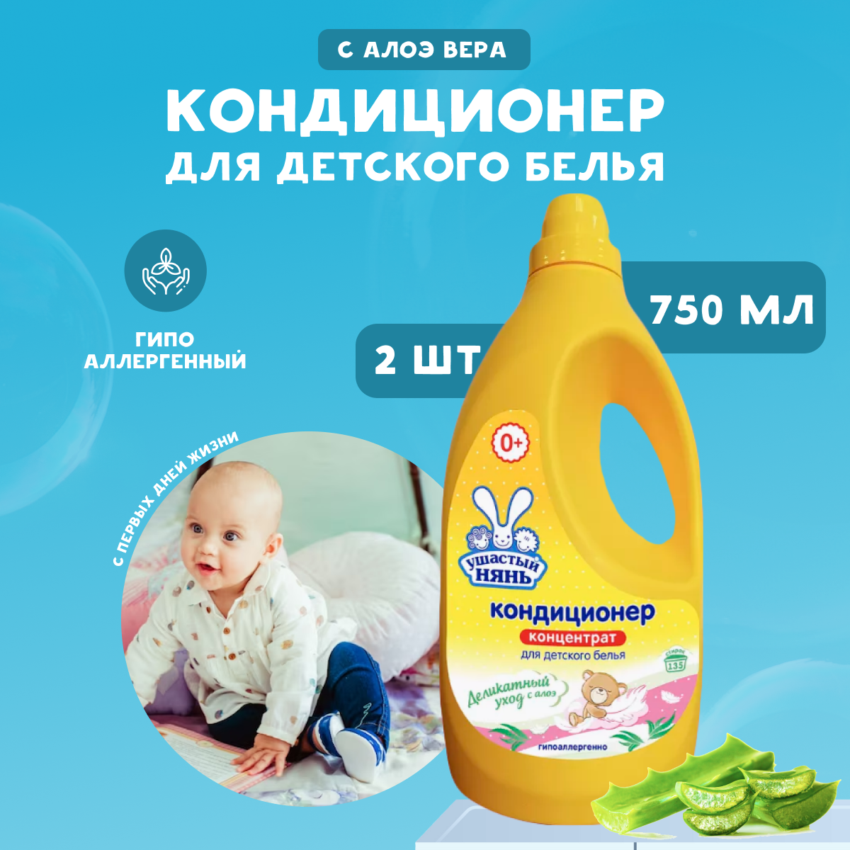 Ушастый нянь Кондиционер для полоскания детского белья с алоэ вера, 750 мл, 2 шт