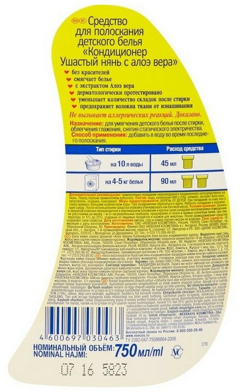 СохранитьКондиционер д/белья ушастый нянь 750мл Алоэ интересное: