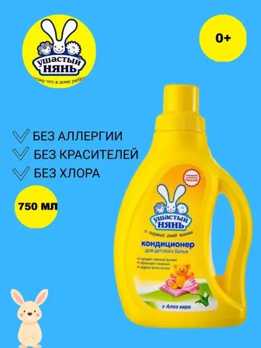 Кондиционер для белья ушастый нянь 750мл С алое вера для детского белья