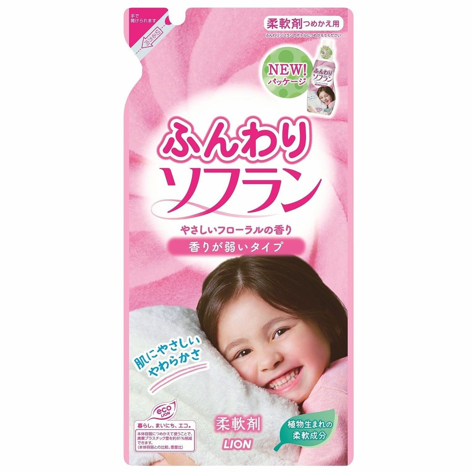 LION Кондиционер для белья Soflan Funwari Нежность пуха для деликатных и шерстяных тканей цветочный аромат, сменная упаковка 500 мл.