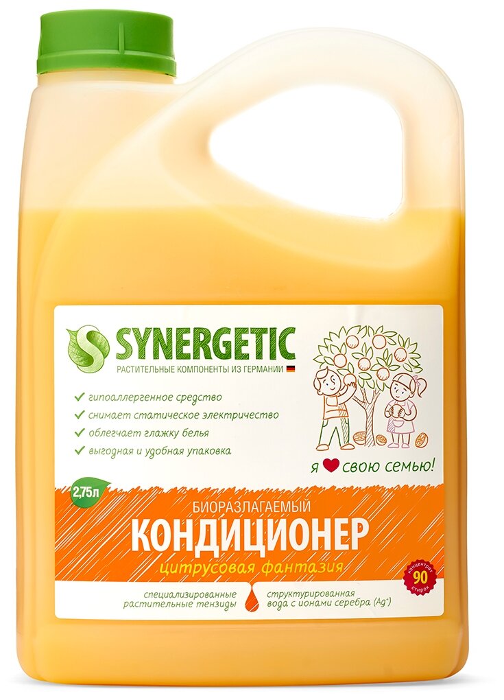 Кондиционер для белья SYNERGETIC "Цитрусовая фантазия" гипоаллергенный, 2,75л, 90 стирок