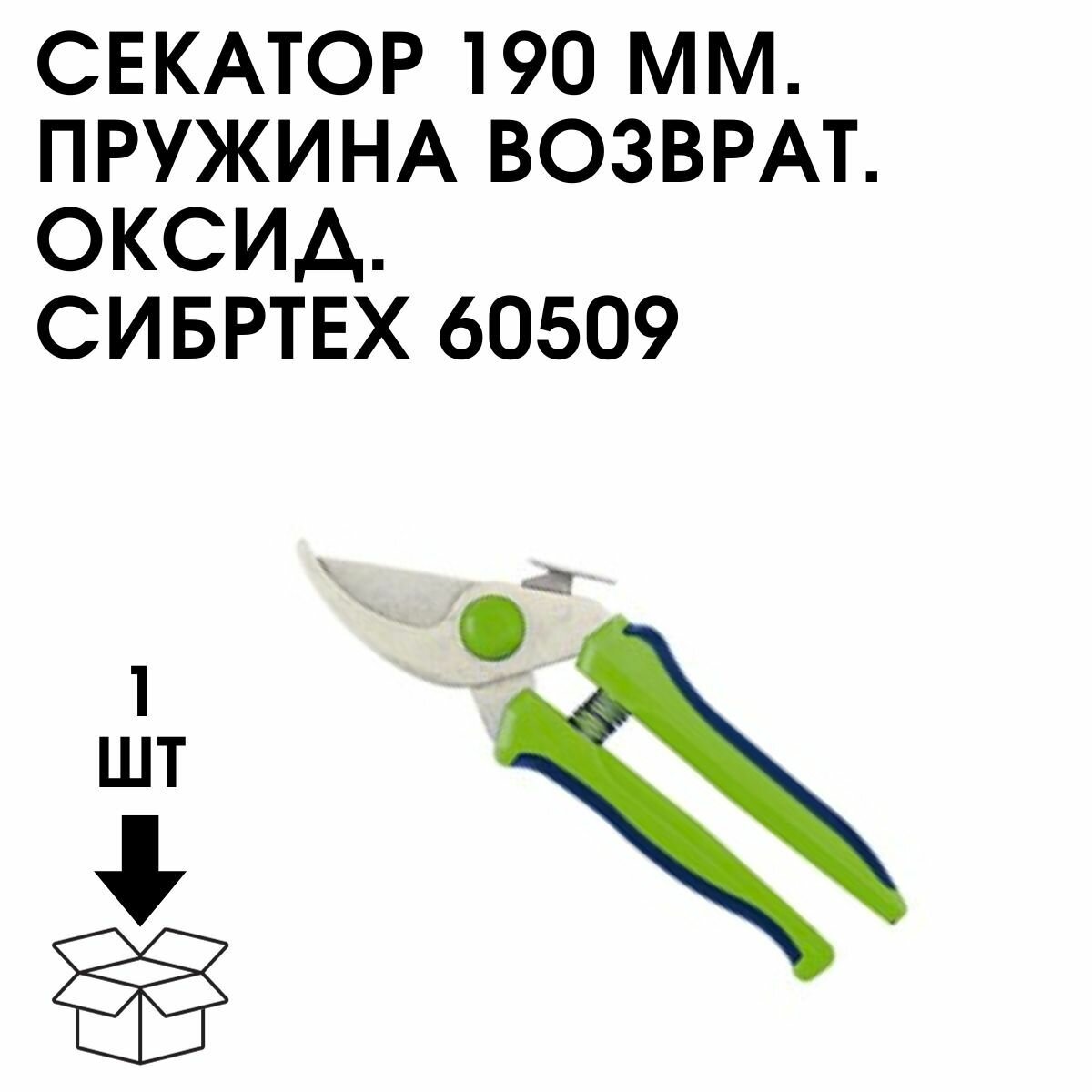 Секатор, 190 мм, пружина возвратная, оксидированное покрытие, пластиковые ручки СИБРТЕХ 60509