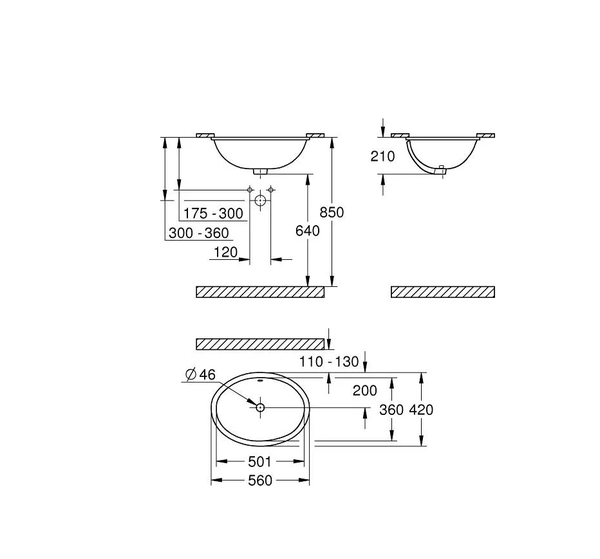 Grohe Bau Ceramic 39423 000 Раковина врезная снизу 560x420