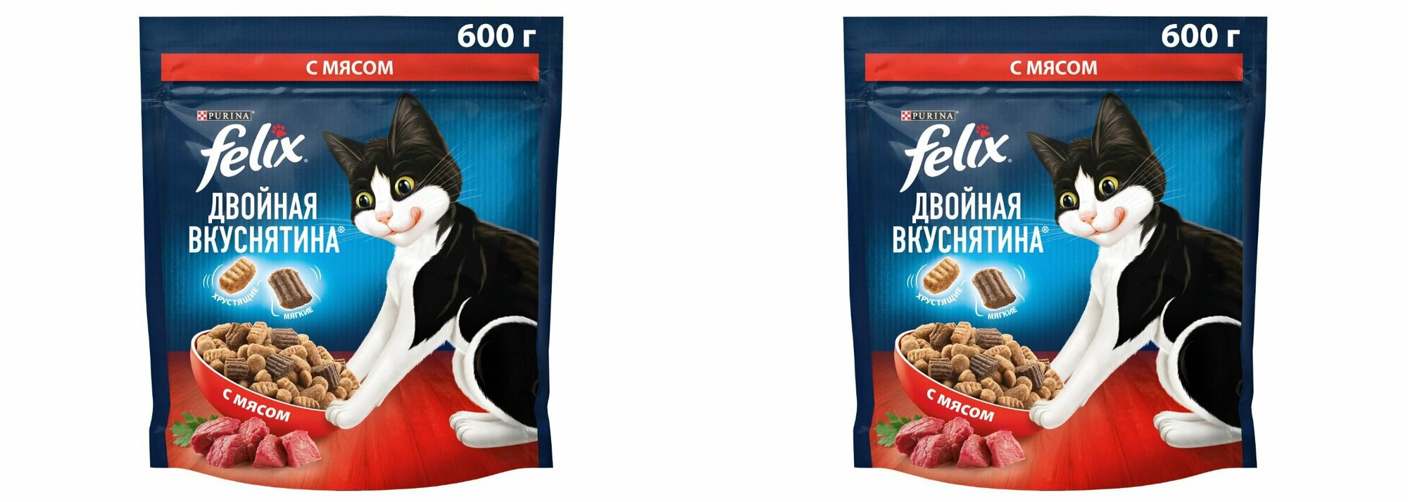 Сухой корм для кошек Felix Двойная вкуснятина с мясом 600г 2 шт