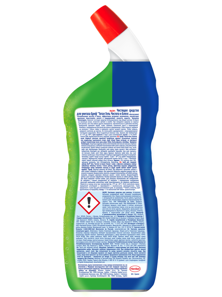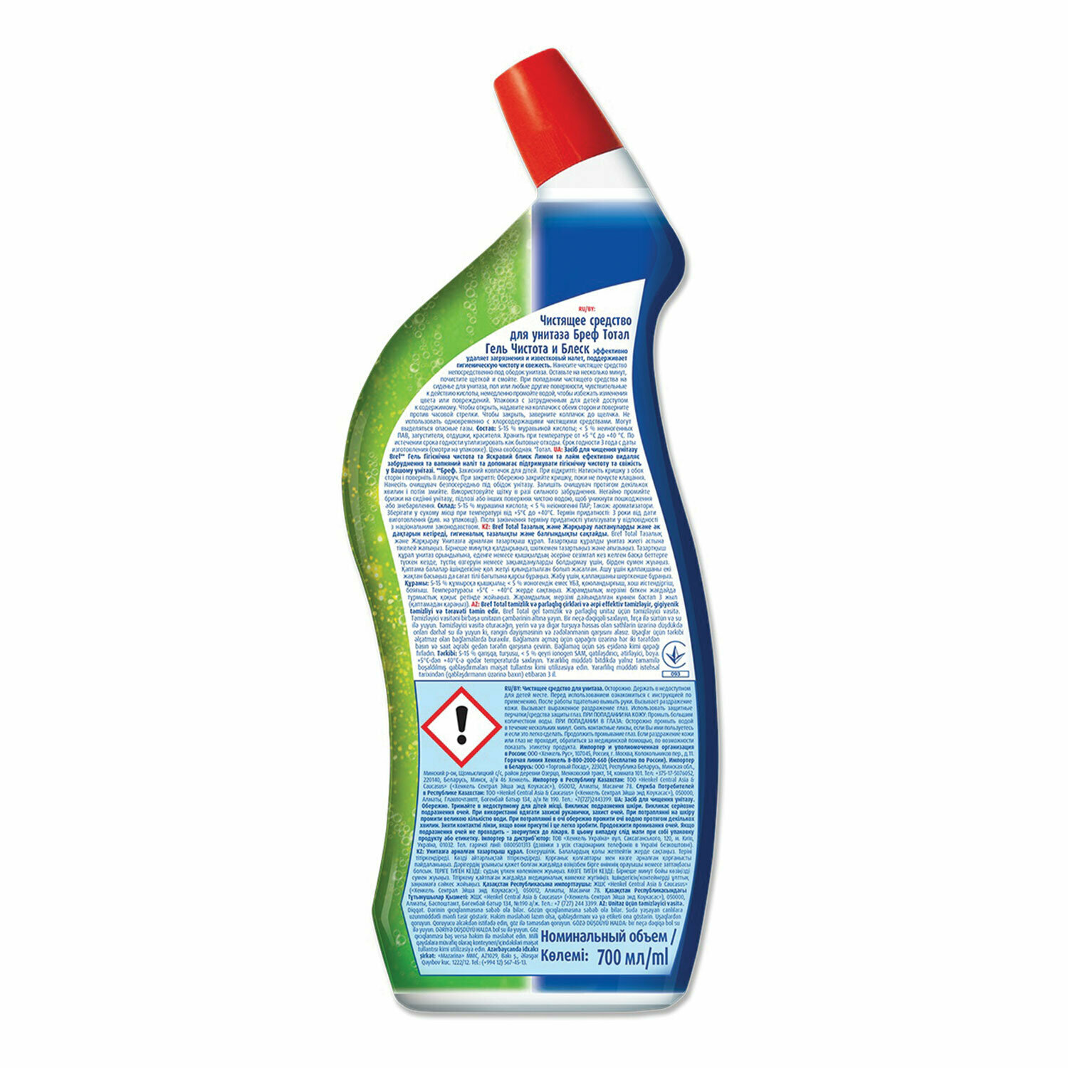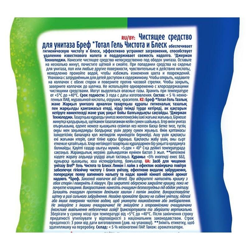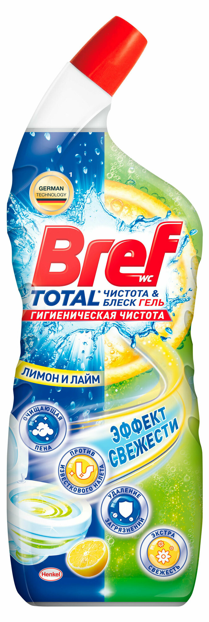 Гель для чистки унитаза, Bref Total Чистота и блеск, "Лимон и лайм", 700 мл