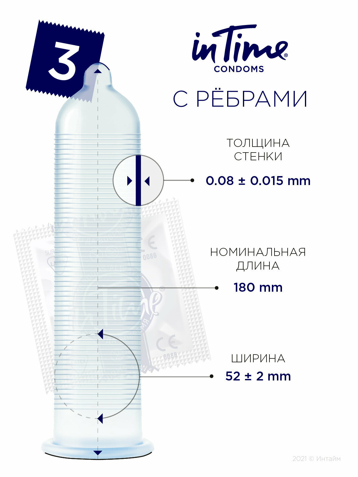 Презервативы IN TIME №3 Ribbed с ребрами (S)