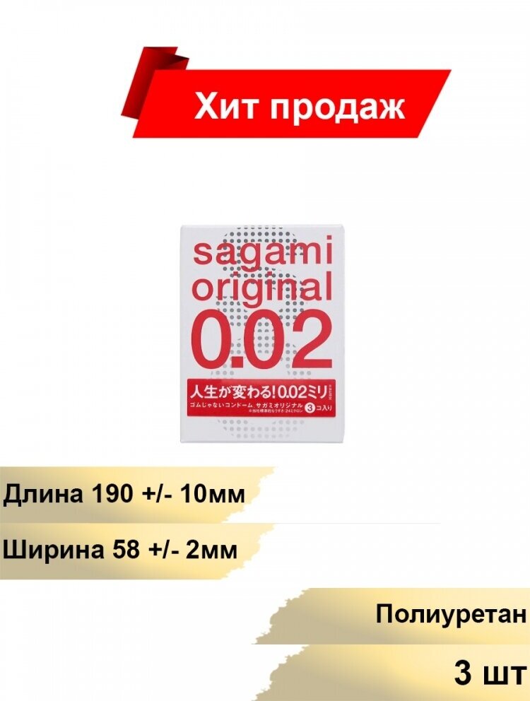 Sagami Original 0.02 - 3 шт. Полиуретановые презервативы 0.02 мм