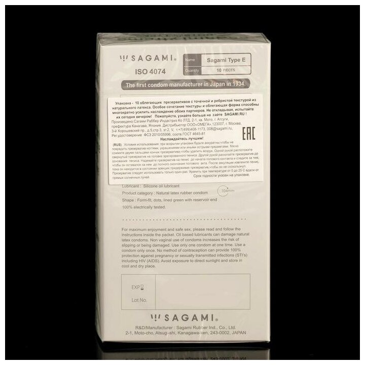 40622 Sagami Xtreme Type E, 10 шт.. Анатомические презервативы с точками
