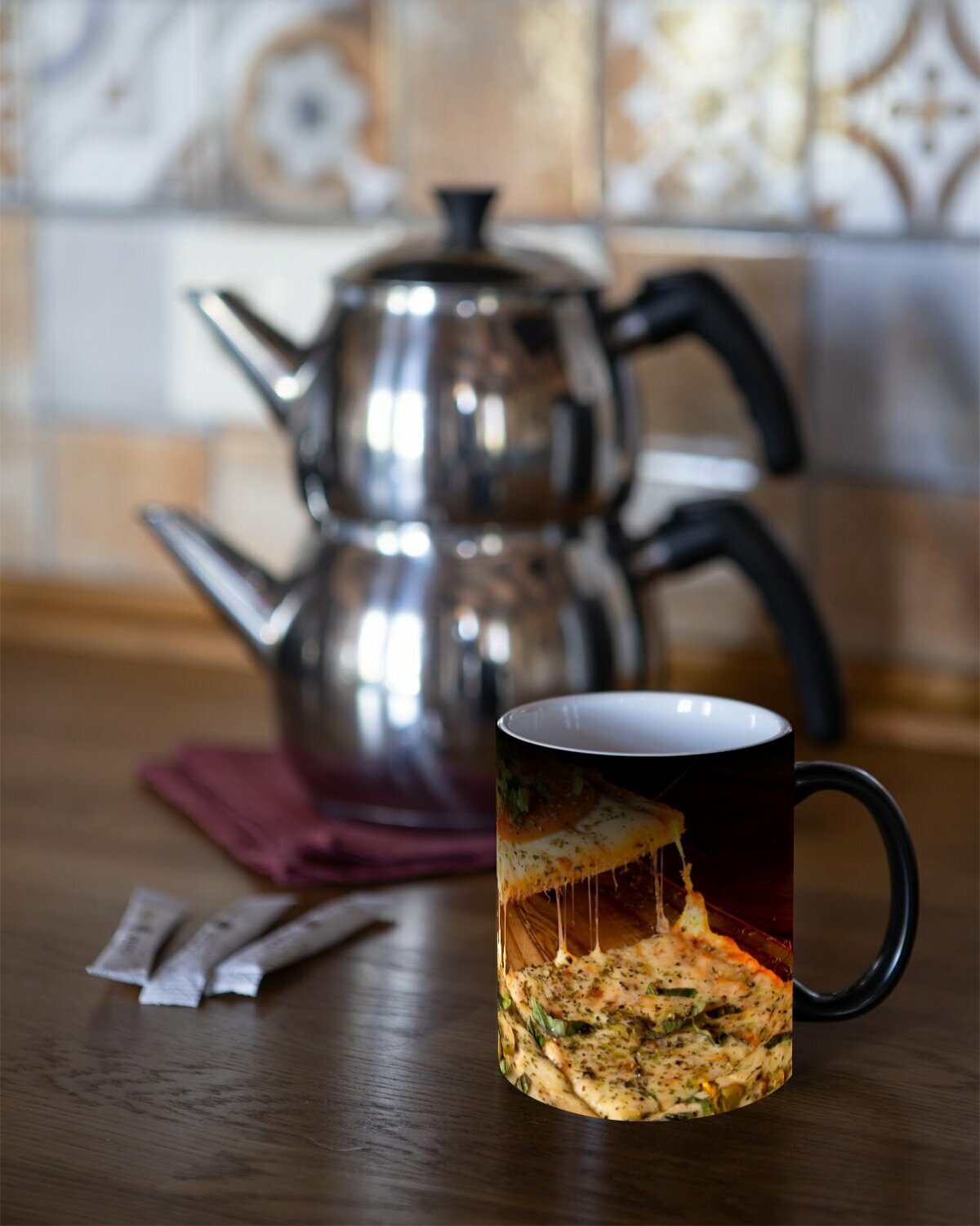 Кружка хамелеон с принтом "Сессия, магазин пиццы, акустический" 330 мл. интересное: