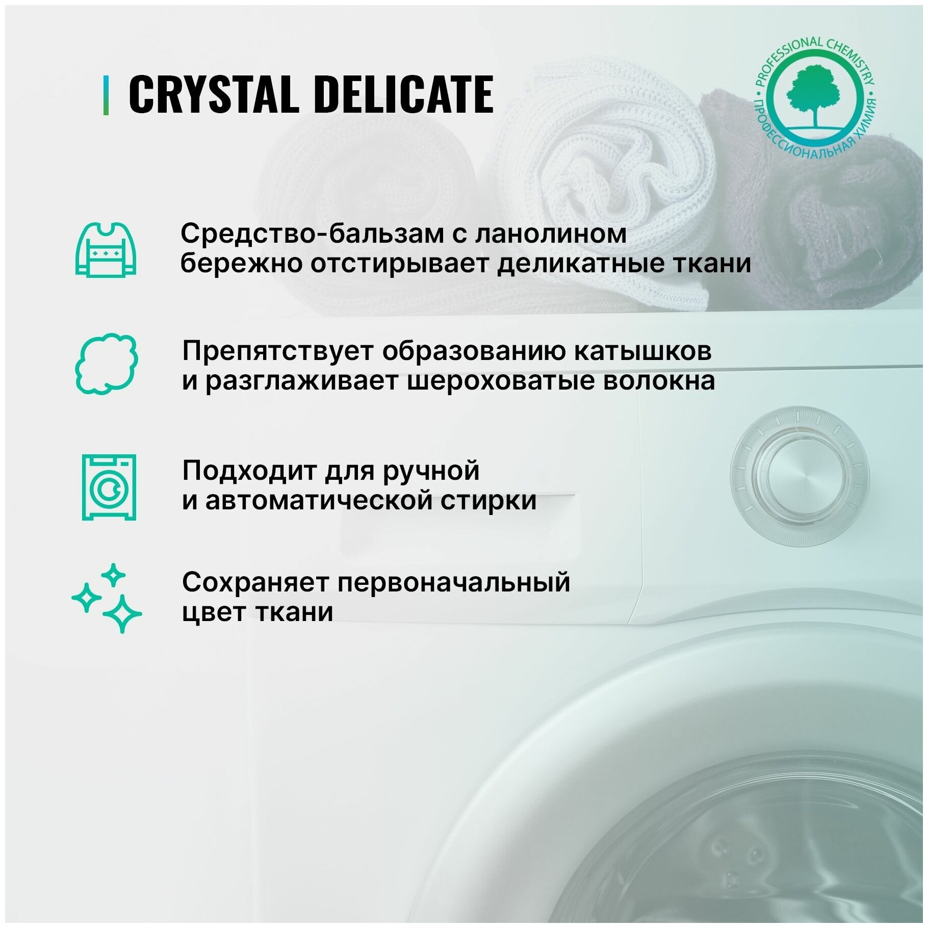 Жидкое моющее средство Prosept Crystal Delicate, для стирки шерсти, шелка и деликатных тканей, 1 л