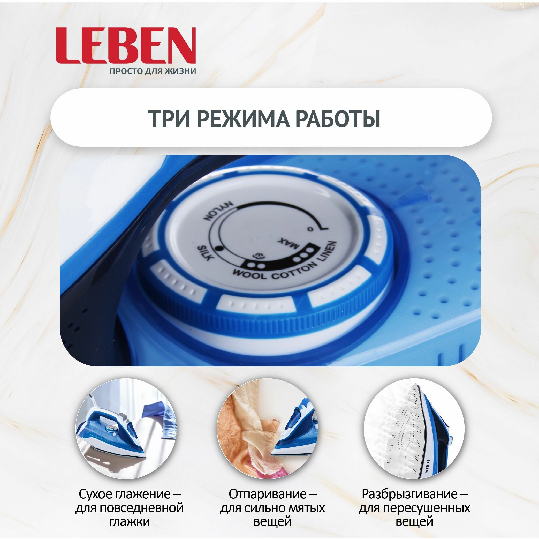 Утюг Leben SW-603, голубой/белый/серый