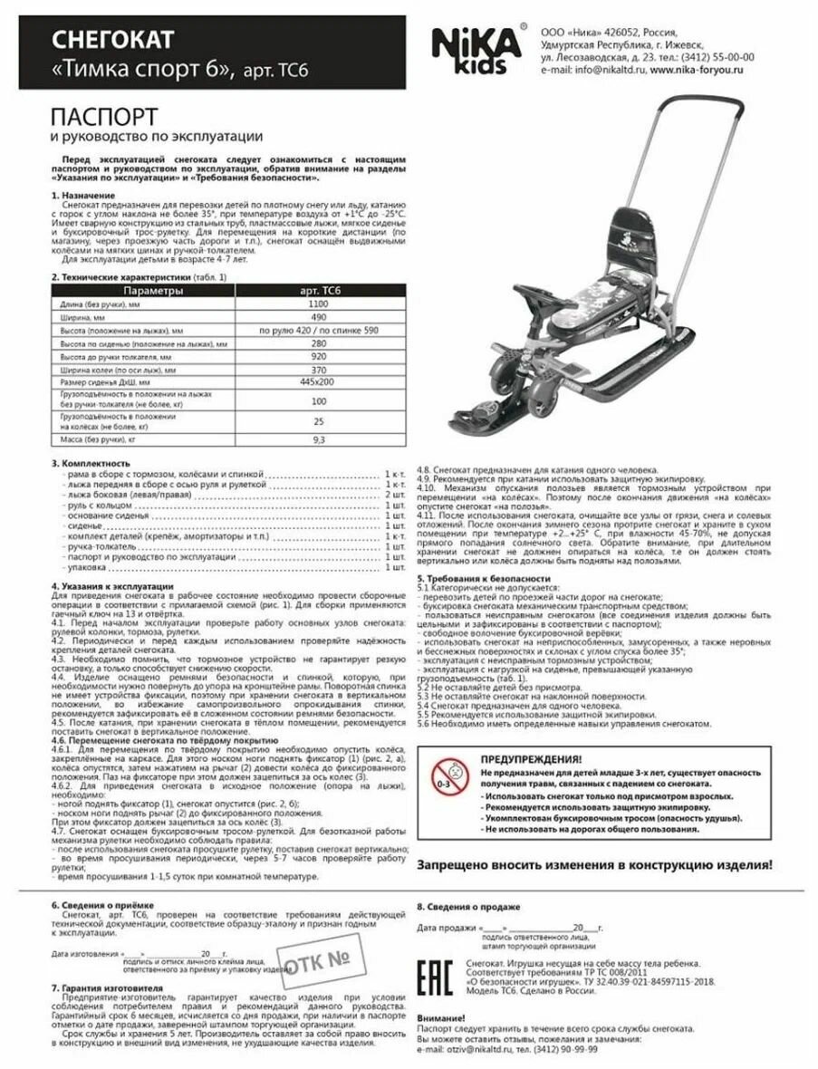 Снегокат Nika Тимка спорт 6 Nika kids hockey