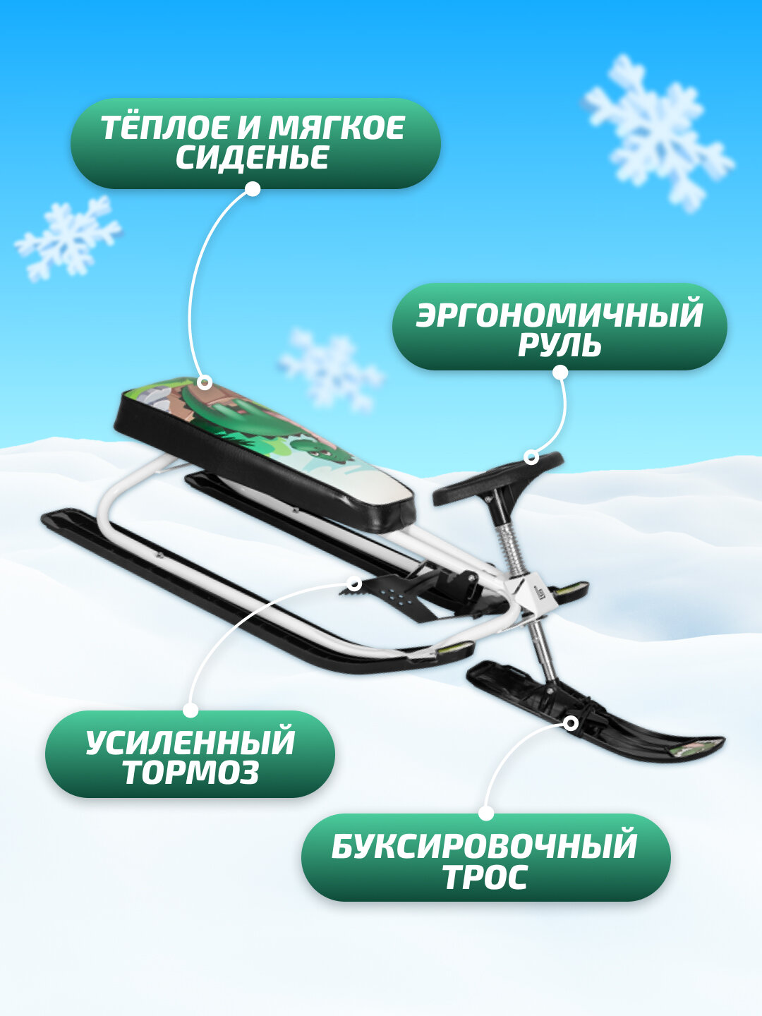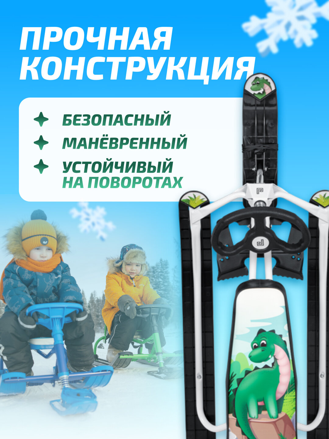 | Плюсы: | Снегокат супер! Детям 3 и 4,5 года отлично!