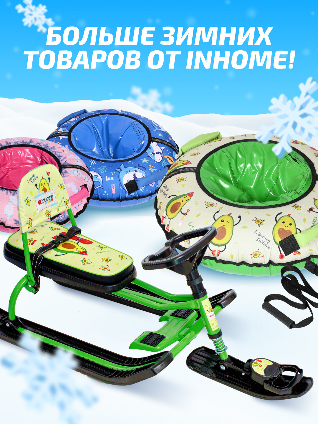 Неудобная ручка, чтоб вести снегокат за собой, в врежках вообще не реально. |