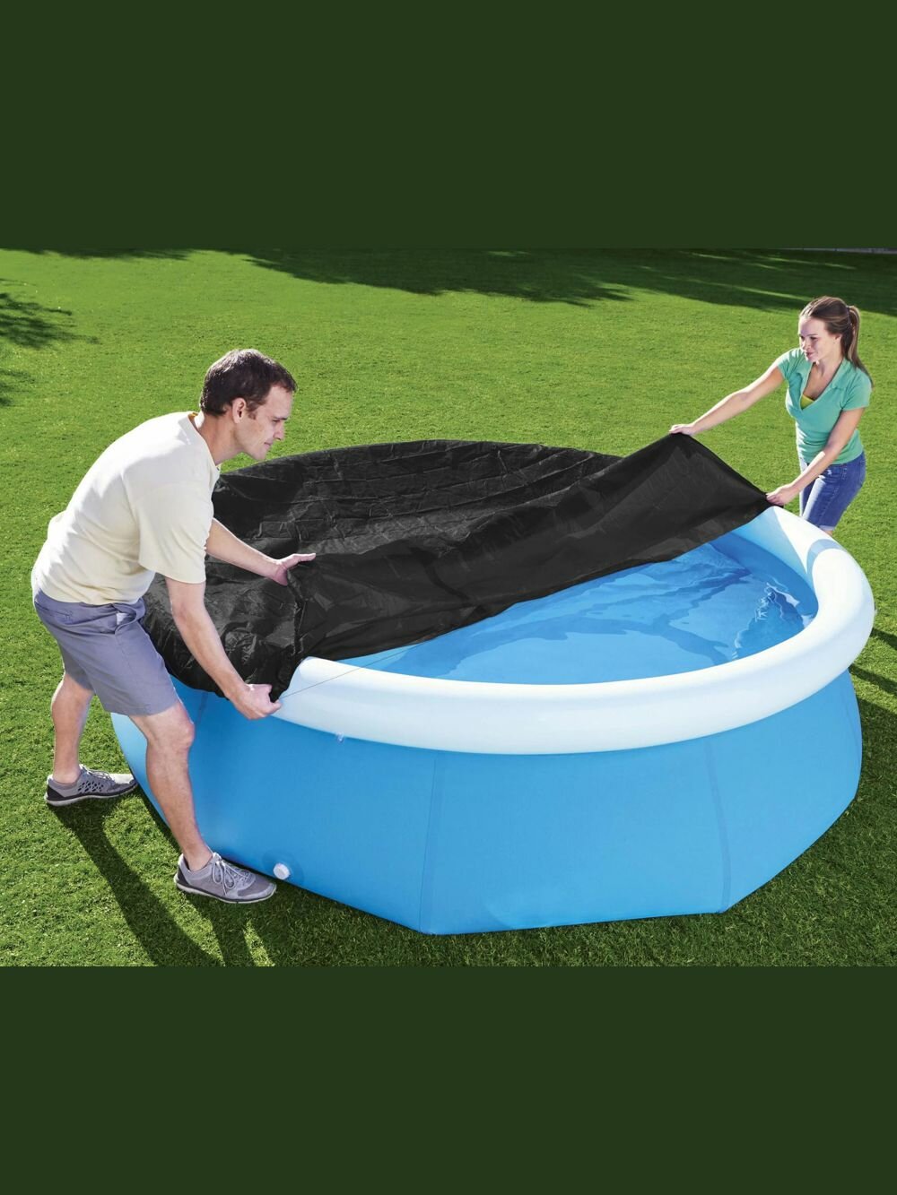 | Отзыв: | Тент стелим на бассейн Bestway диаметром 244. Даже с запасом, есть верёвочки для утягивания и плюс вода под тентом хорошо нагревается. Живность и мусор через тент не попадает. Рекомендую к покупке! |