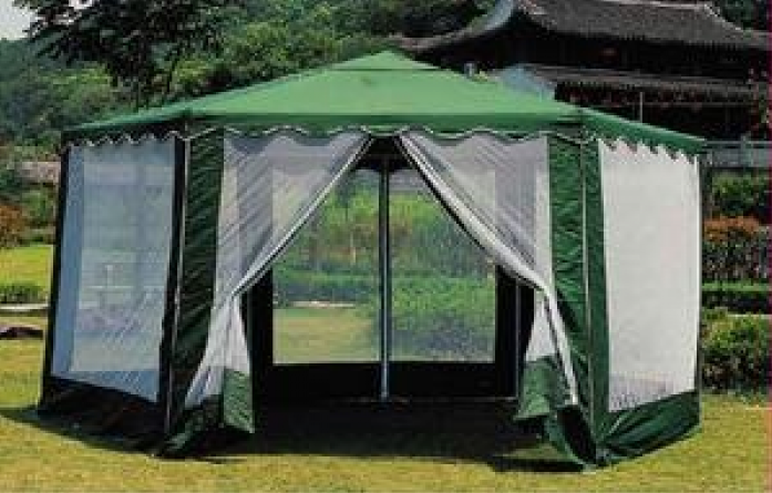 | Минусы: | Что плохо и очень плохо. Разрушается ткань сетки за3-4 года. И ГЛАВНОЕ- нужен обязательно центральный столб, чтобы шатер при сильном ветре не качался и держал всю конструкцию. На зиму с шатра снимается только верх |