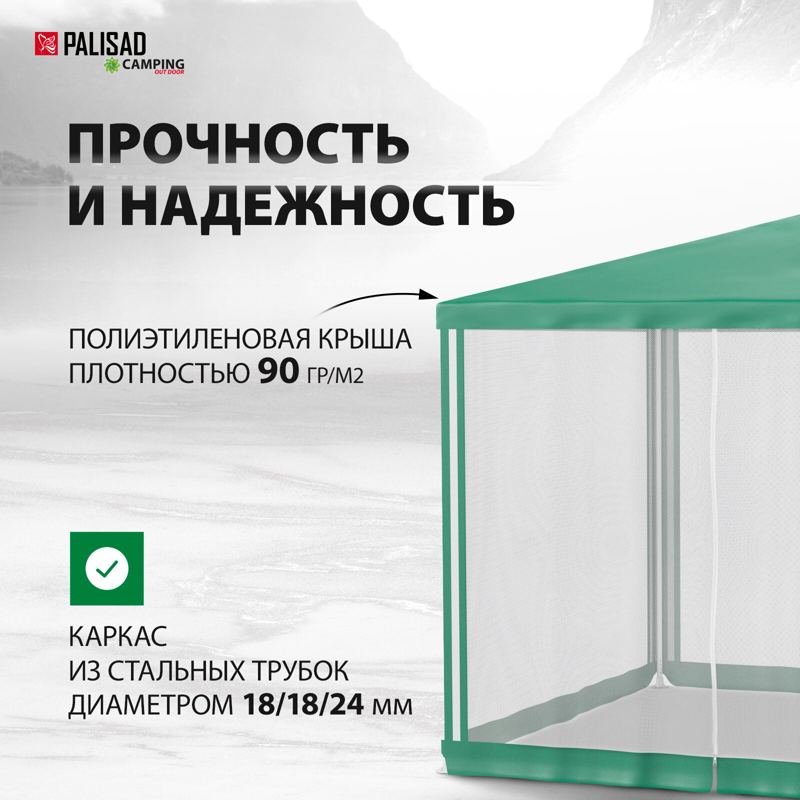 Шатер-тент "CAMPING" 2,5*2,5/2,4 М стенки антимоскит. (1) "PALISAD"