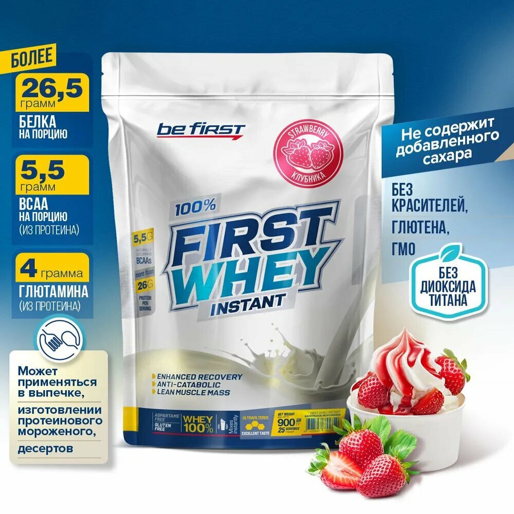 Сывороточный протеин Be First First Whey Instant (сывороточный протеин) 900 г, Клубника