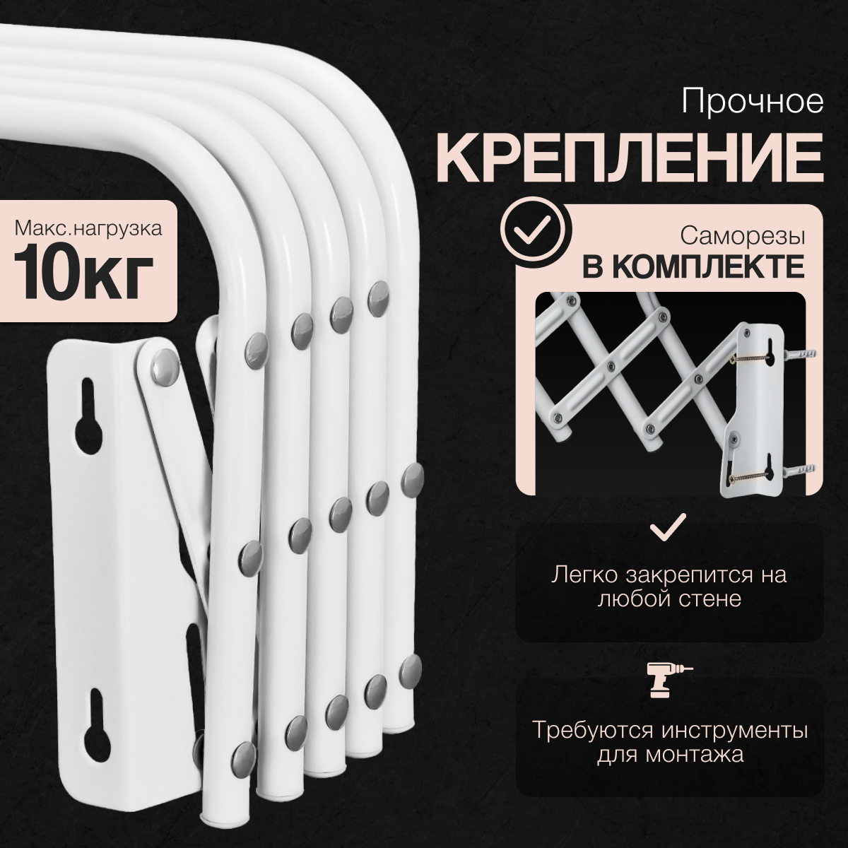 | Плюсы: | Широкая сушилка, в комплекте саморезы |