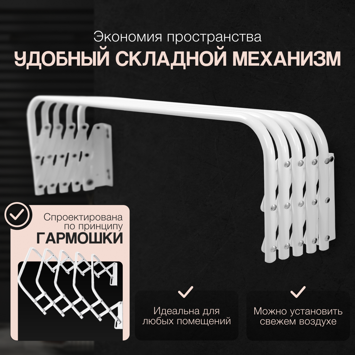 Сушилка для белья настенная раздвижная гармошка 90 см, 10 кг