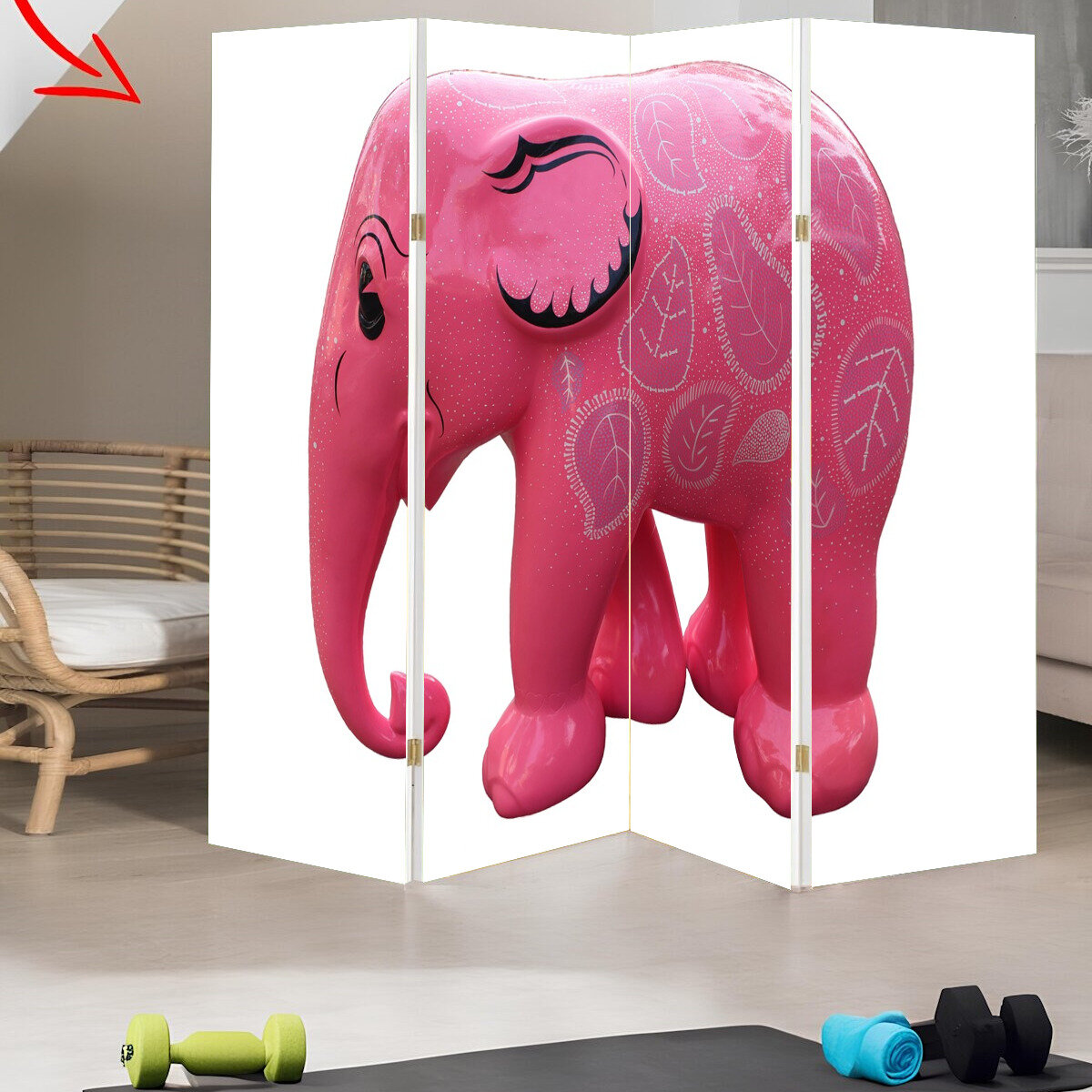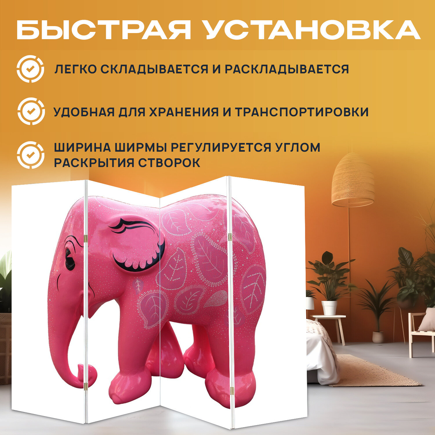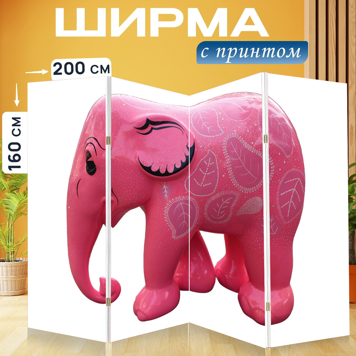 Купить Ширма перегородка с принтом "Розовый слон, слон, розовый" на холсте - 200x160 см. для зонирования, раскладная
