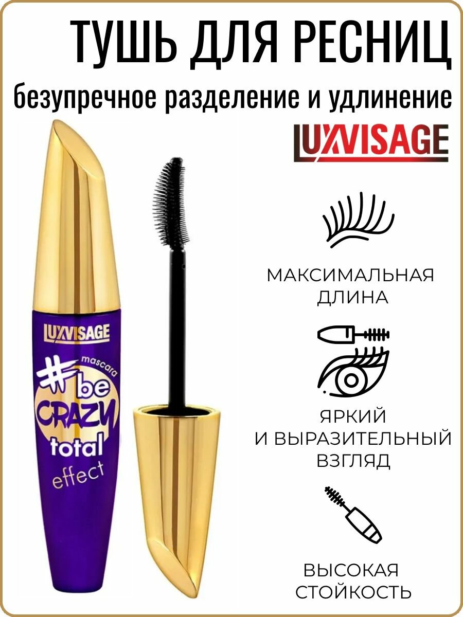Удлиняющая тушь для ресниц Be Crazy Total Effect, LuxVisage, 4811329026567