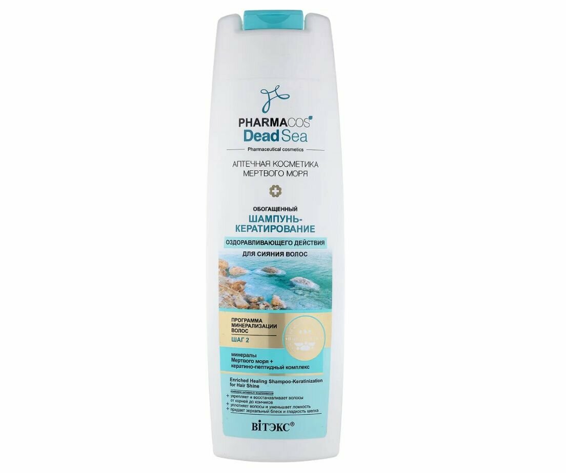 Витэкс шампунь-кератирование Pharmacos Dead Sea Аптечная косметика Мертвого моря Оздоравливающего действия для сияния волос 400 мл