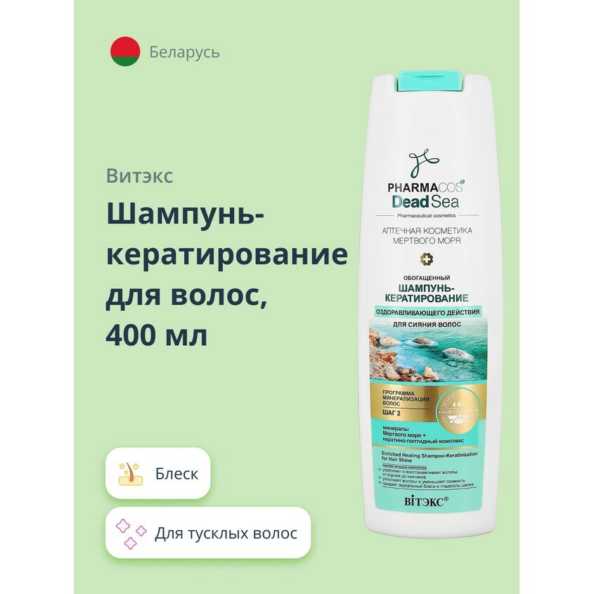 Купить Витэкс Обогащенный шампунь-кератирование PHARMACOS DEAD SEA оздоравливающего действия для сияния волос 400мл