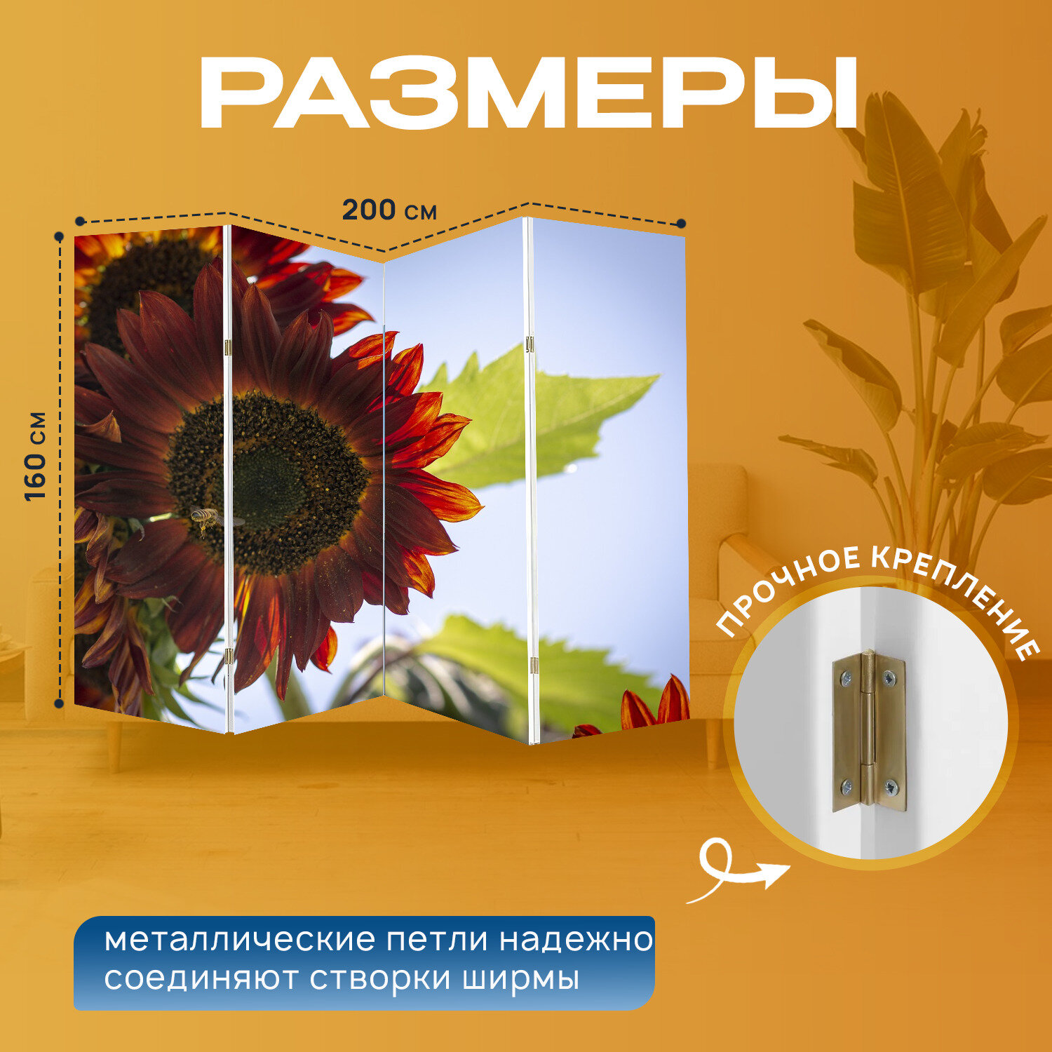 Ниже Вы можете прочитать отзывы на Ширма перегородка с принтом "Подсолнечник, падение, сад" на холсте - 200x160 см. для зонирования, раскладная, ознакомится с подробными характеристиками, посмотреть интересные обзоры и фотографии на Ширма перегородка с принтом "Подсолнечник, падение, сад" на холсте - 200x160 см. для зонирования, раскладная.