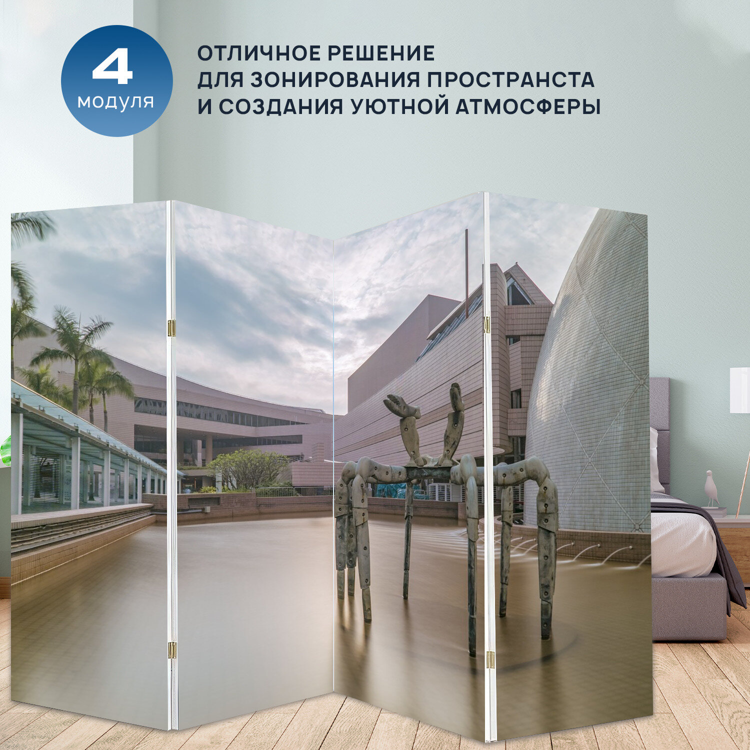Купить Ширма перегородка с принтом "Здание, вод, путешествовать" на холсте - 200x160 см. для зонирования, раскладная