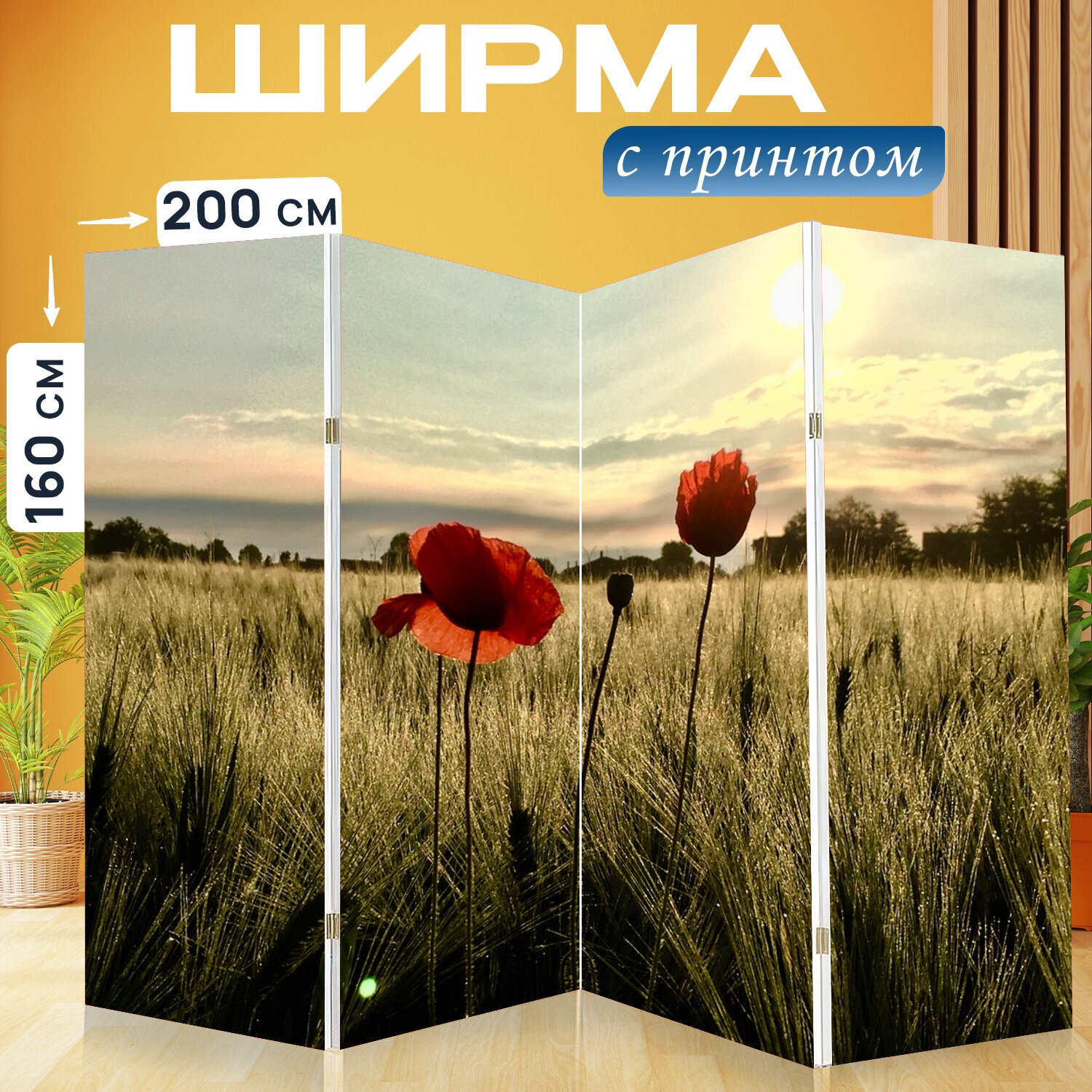 Купить Ширма перегородка с принтом "Природа, цветок, мак" на холсте - 200x160 см. для зонирования, раскладная