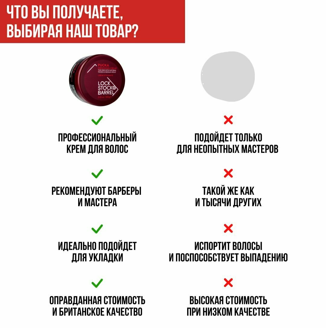 Lock Stock & Barrel Крем для волос мужской Pucka Grooming Creme, 100 гр, для создания гибкой текстуры и объема