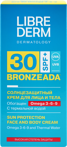 LIBREDERM Солнцезащитный крем с Омега 3-6-9 и термальной водой SPF30, BRONZEADA, 150 мл, Librederm