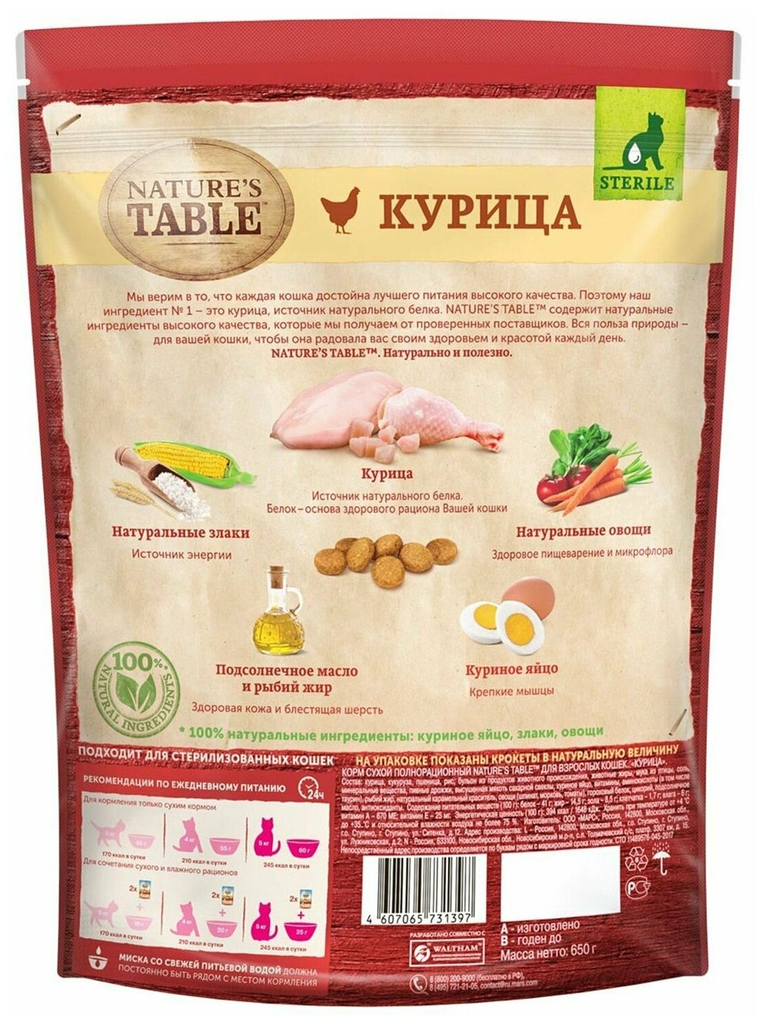 Natures Table Сухой корм для кошек с курицей, 10172991, 0,65 кг, 25342 интересное: