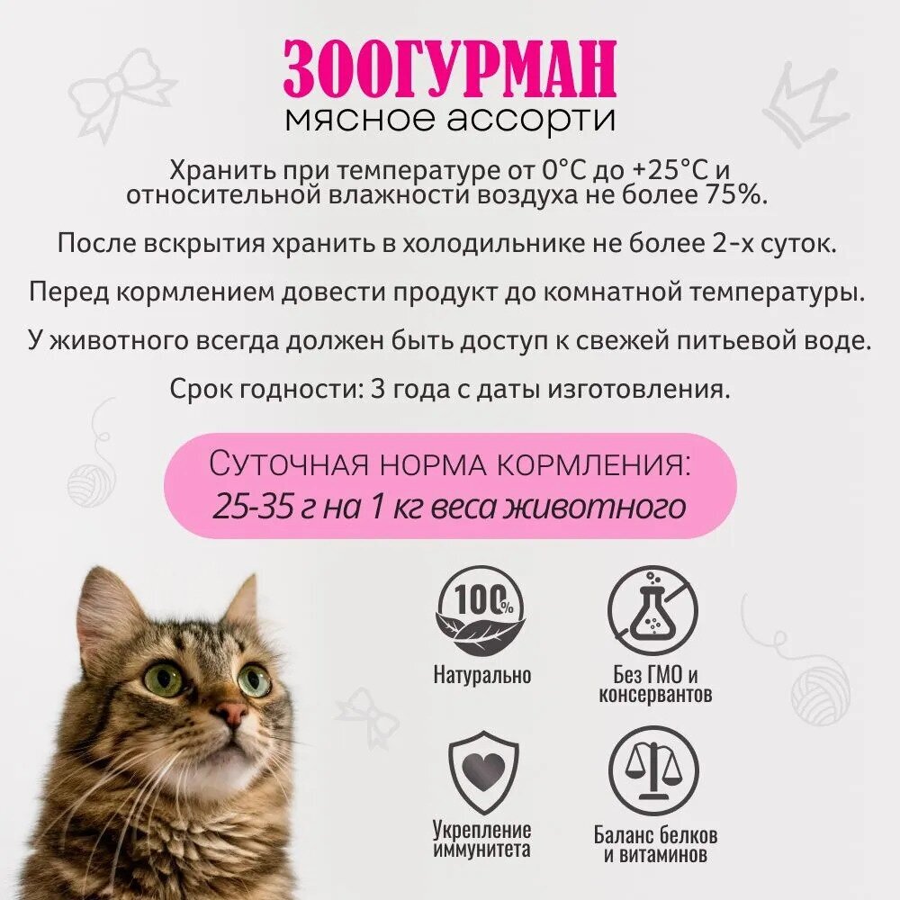 Зоогурман мясное ассорти для взрослых кошек с телятиной и языком (100 гр х 24 шт)