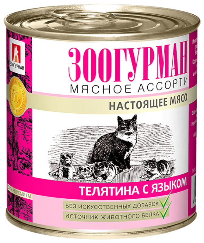 Зоогурман консервы для кошек Мясное ассорти Телятина с языком 250г
