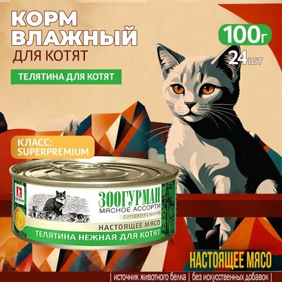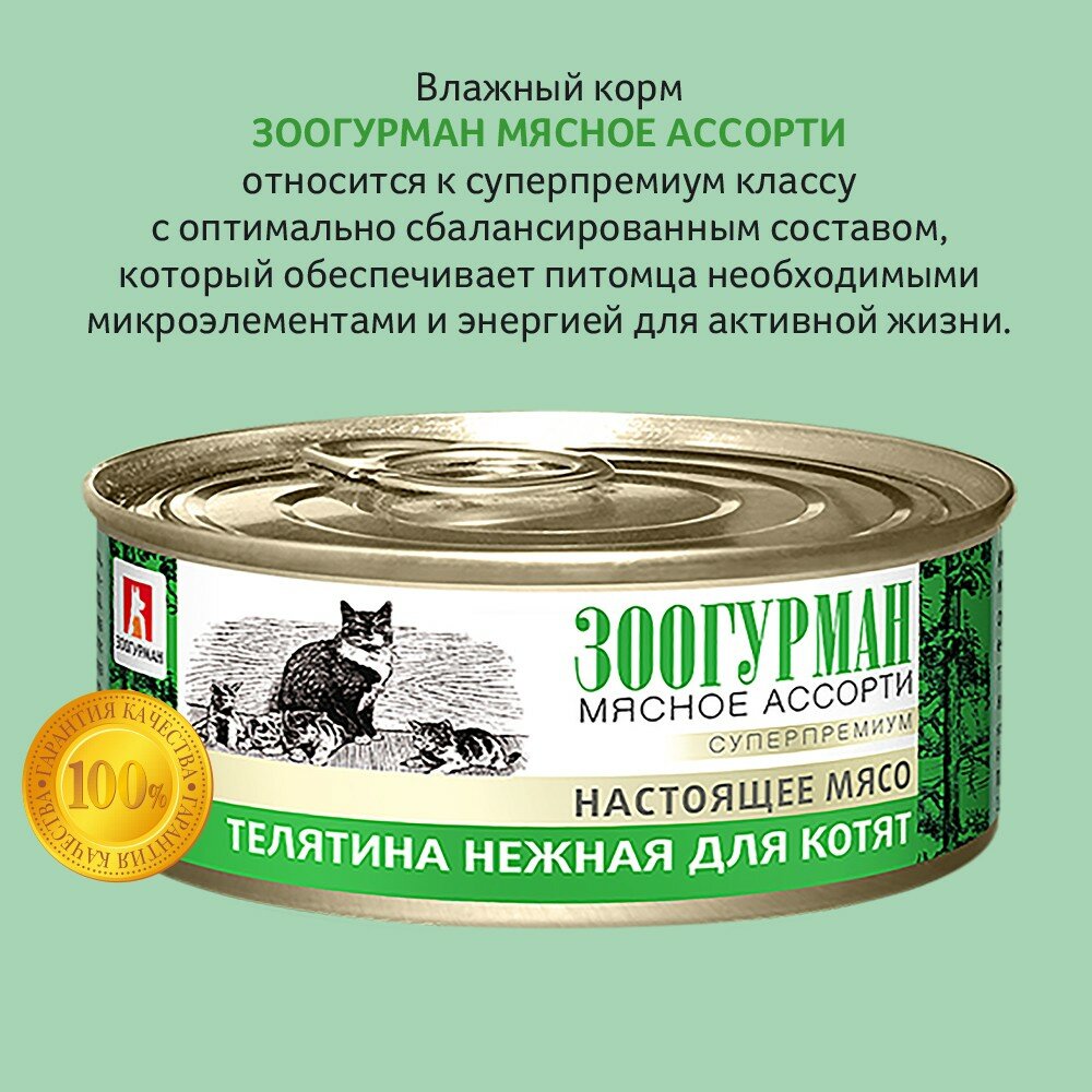 Купить Корм влажный Зоогурман для кошек Мясное ассорти Телятина нежная для котят 24шт*100гр