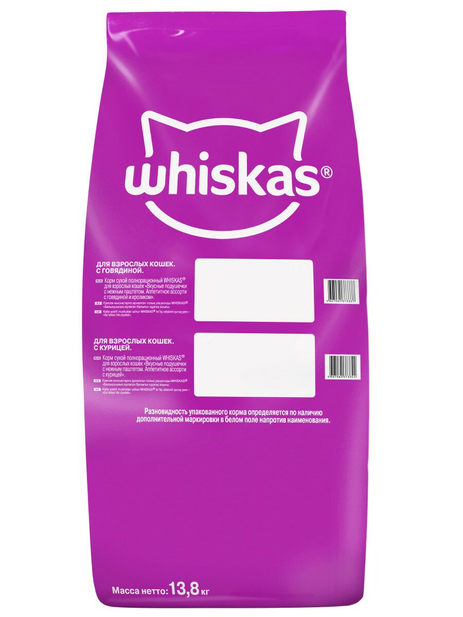 Сухой корм Whiskas для кошек, курица/индейка паштет, подушечки, 13,8 кг Whiskas 10067809 .