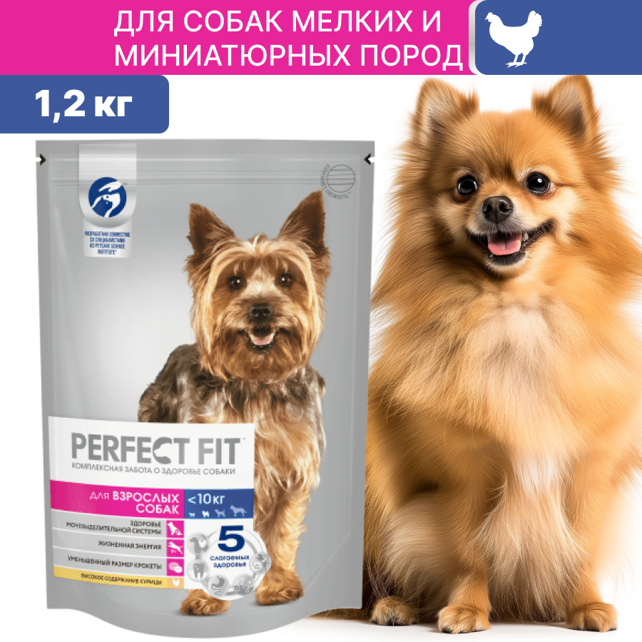 Корм для собак PERFECT FIT для мелких и миниатюрных пород старше одного года, курица сух. 1,2кг