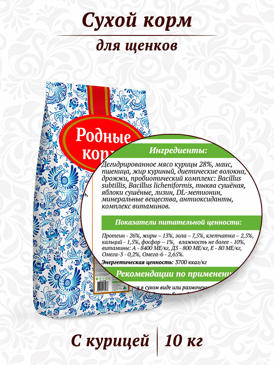 Родные Корма корм для щенков всех пород, курица 10 кг