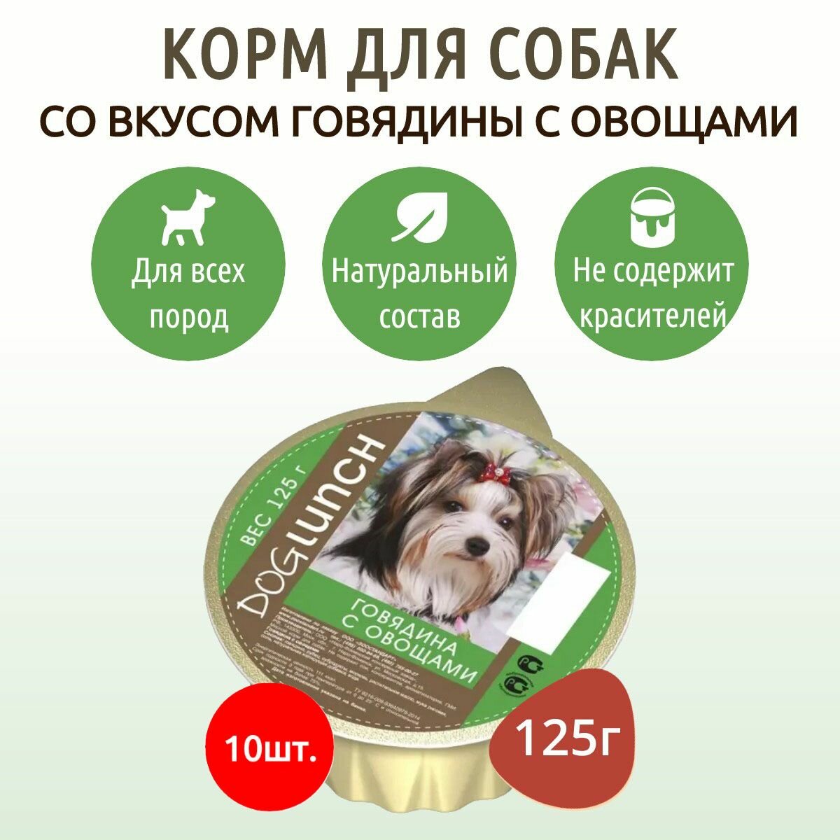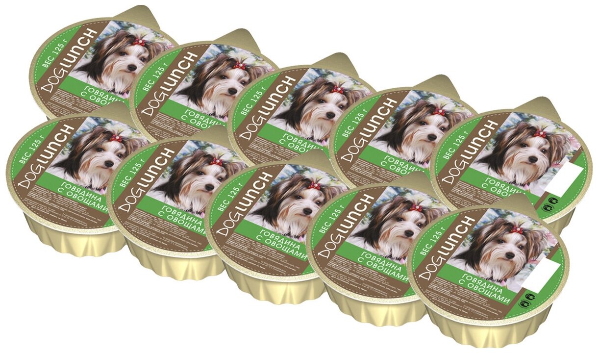 Dog Lunch влажный корм для взрослых собак крем-суфле с говядиной и овощами, в ламистерах - 125 г х 10 шт