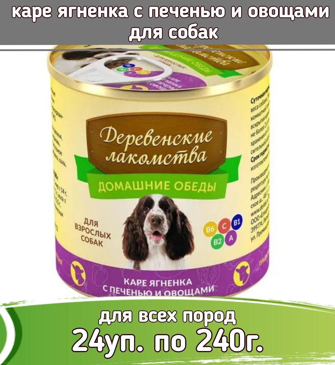 Корм для собак деревенские лакомства Домашние обеды Каре ягненка, печень, овощи конс.240г (упаковка - 4 шт)