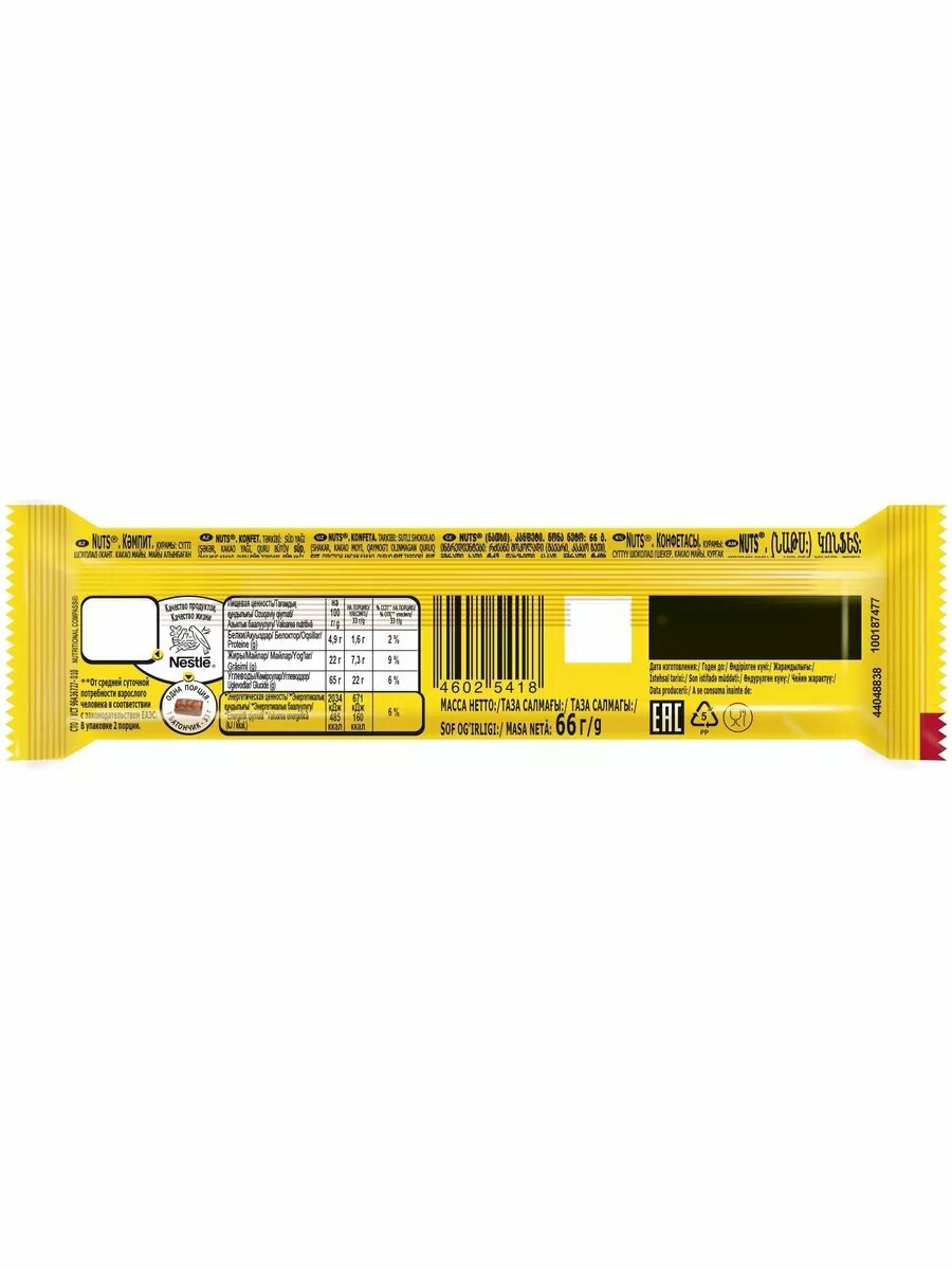 Шоколадный батончик Nuts, 24 шт по 66 г