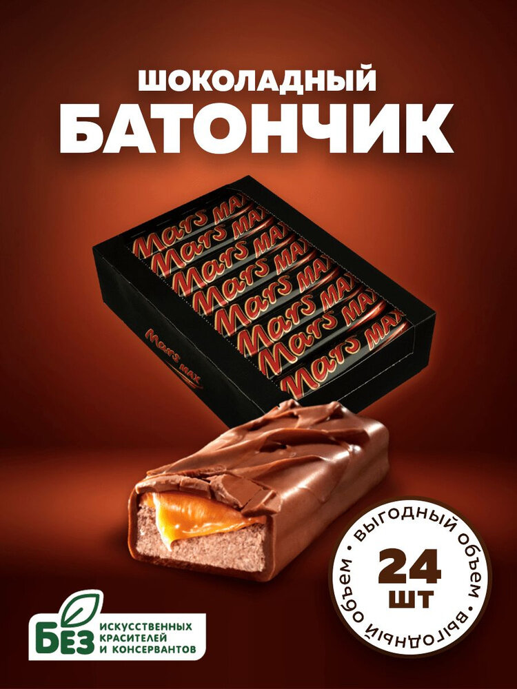 Батончик Mars Max с карамелью и нугой, 81 г, 24 шт.