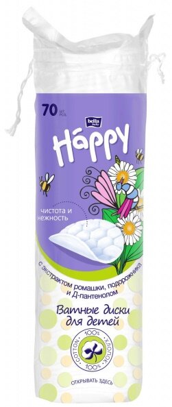 Ватные диски bella baby Happy с экстрактом ромашки, подорожника и Д-пантенолом по 70шт