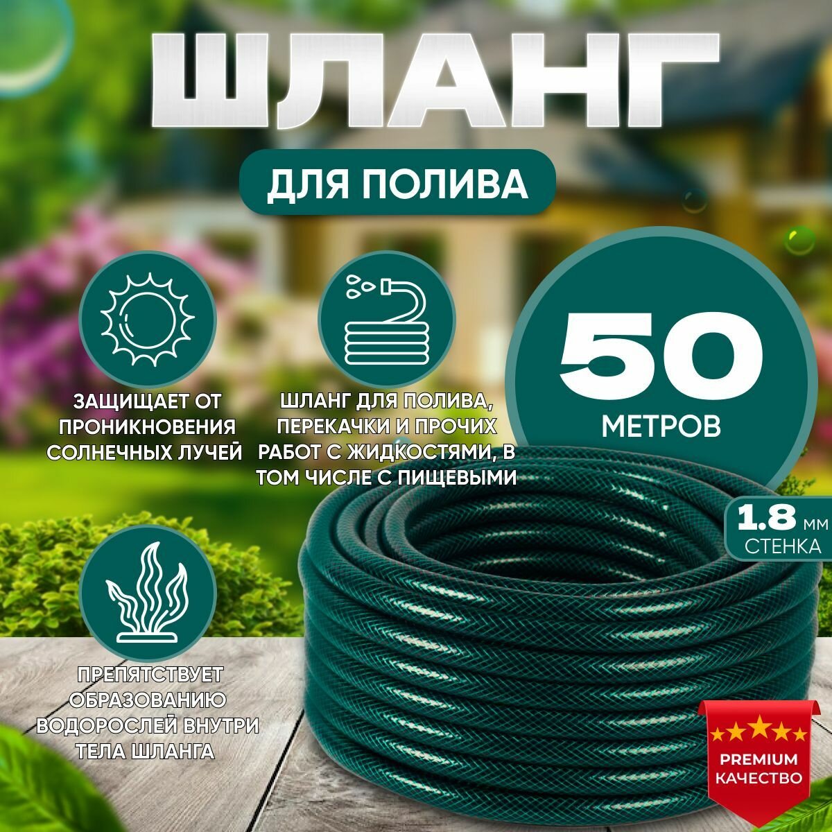 Купить Шланг ПВХ 1/2" 12,5*16,1мм, 50м, 3-сл, армир, толщ. 1,8мм, непрозрач зеленый Метеор, ПолимерШланг