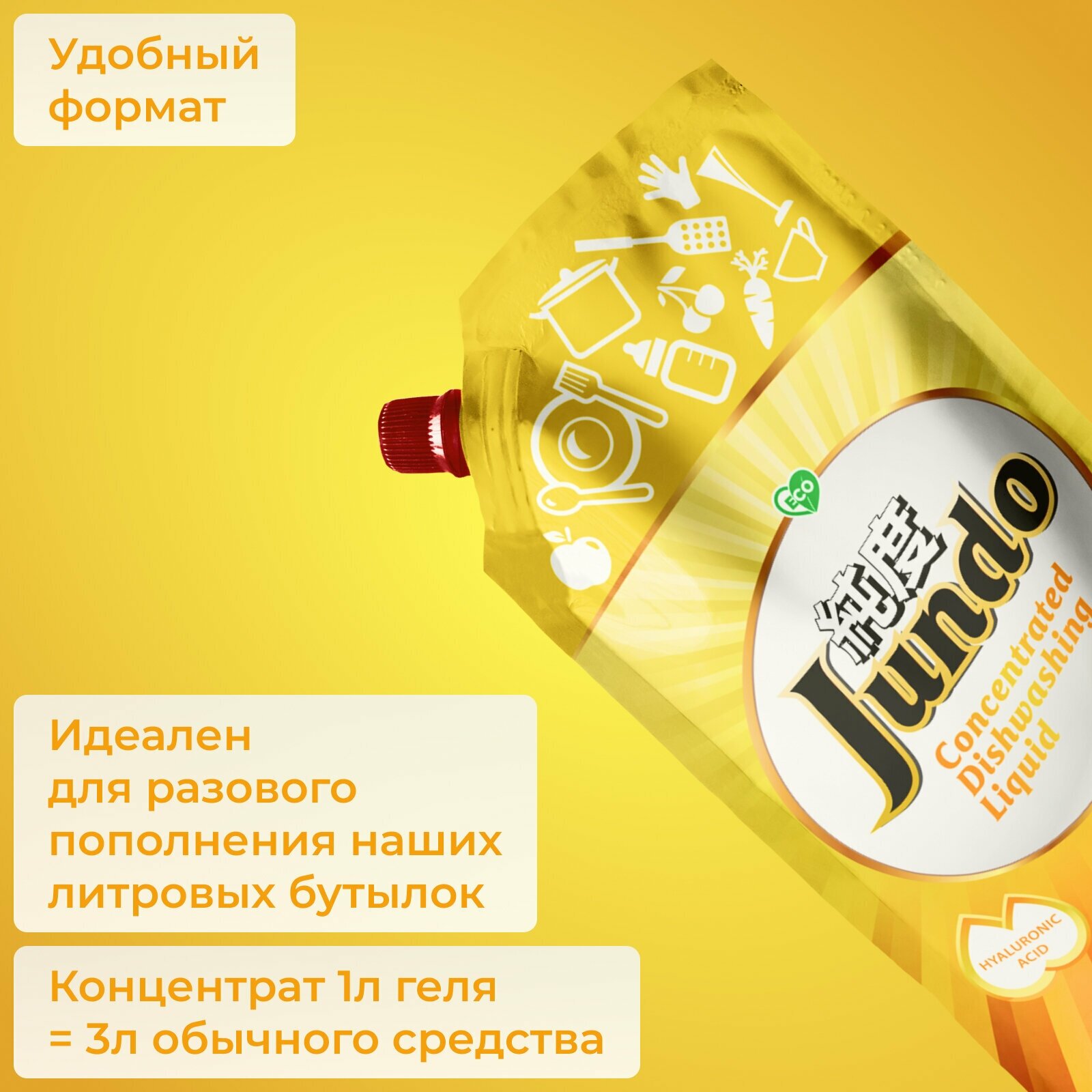 Jundo Антибактериальный концентрированный гель с гиалуроновой кислотой для мытья посуды и детских принадлежностей Juicy Lemon, 800 мл, Jundo