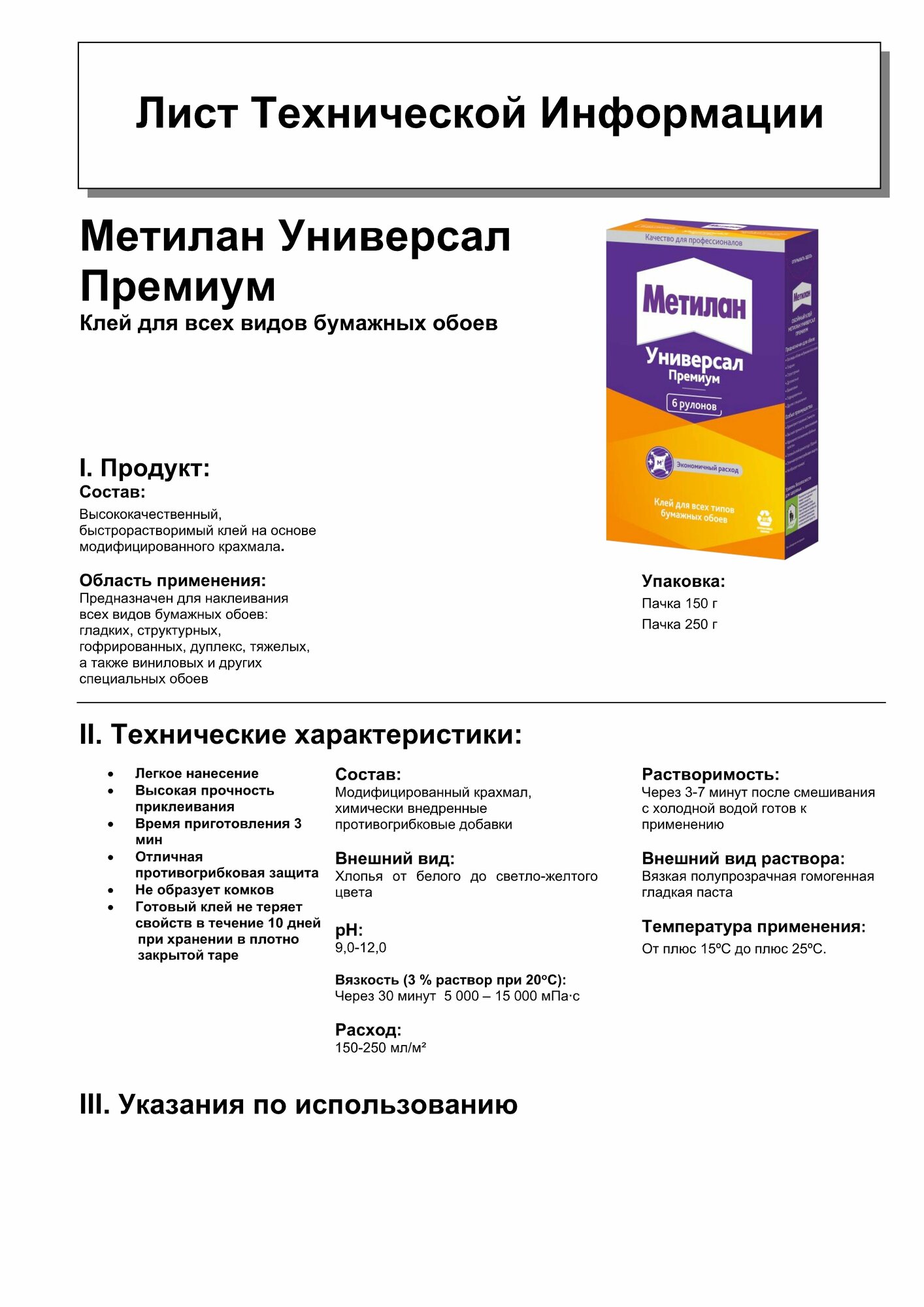 Клей для Обоев Метилан Премиум Ультра Флиз 250ГР (18) Хенкель .