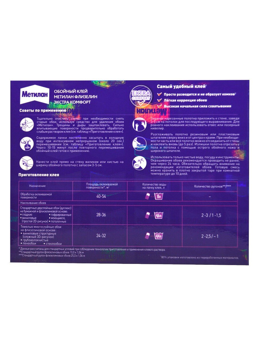 Метилан Флизелин Ультра Премиум клей обойный (500г) / METYLAN Флизелин Ультра Премиум клей для флизелиновых обоев (0,5кг)